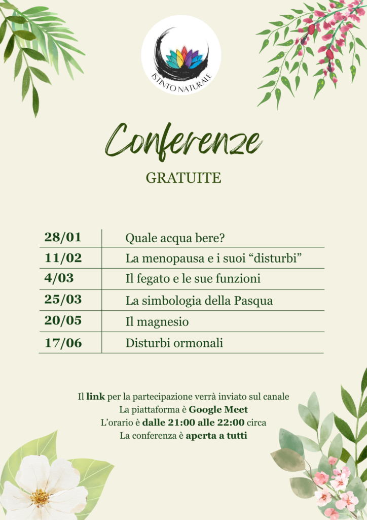 Sei appuntamenti serali per esplorare insieme temi di salute naturale, benessere e consapevolezza.